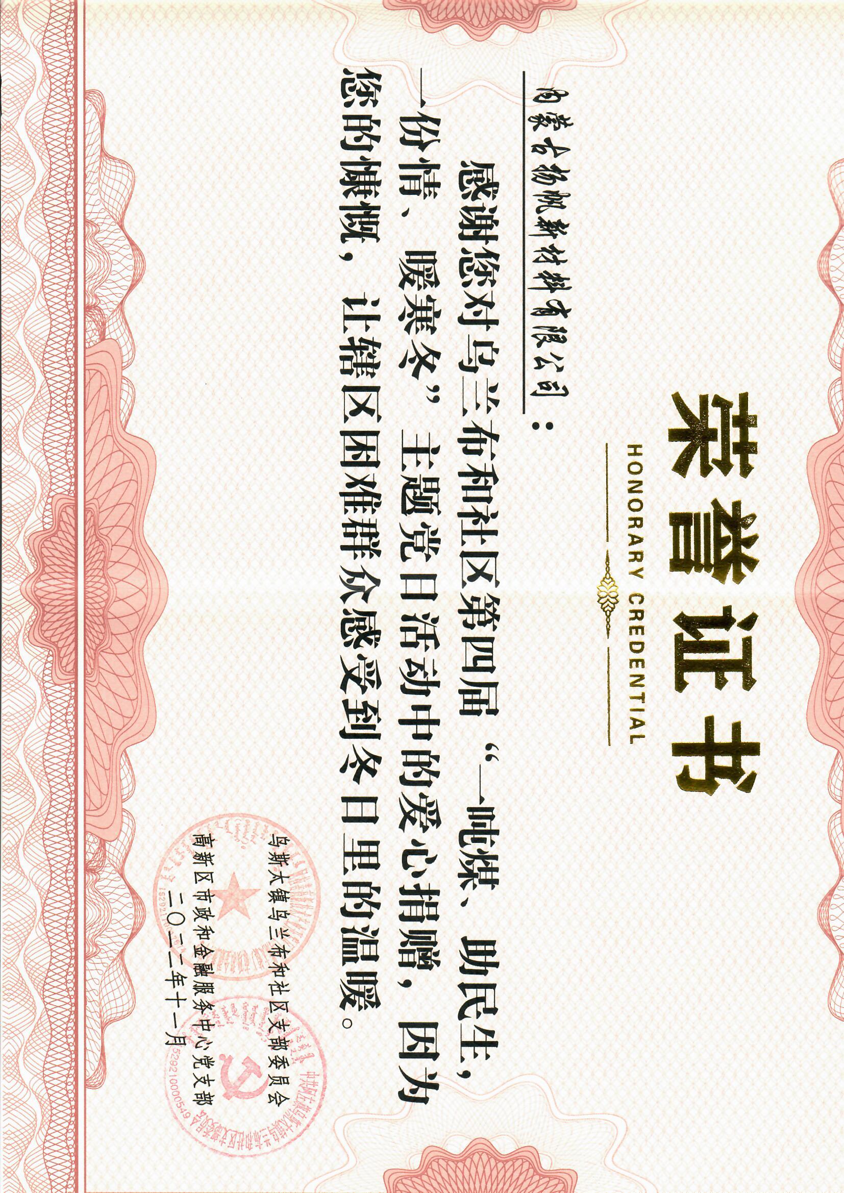 捐贈儀式上,烏蘭布和社區工作人員表示,各企業“暖心煤”不僅僅溫暖了社區干部群眾的心,也切實解決了困難群眾和環衛工人的“燃煤”之急,讓這個寒冷的冬天溫暖加倍,暖身又暖心。隨后,社區代表們為愛心企業頒發證書,以此來表達對駐地企業暖心之舉的感謝。