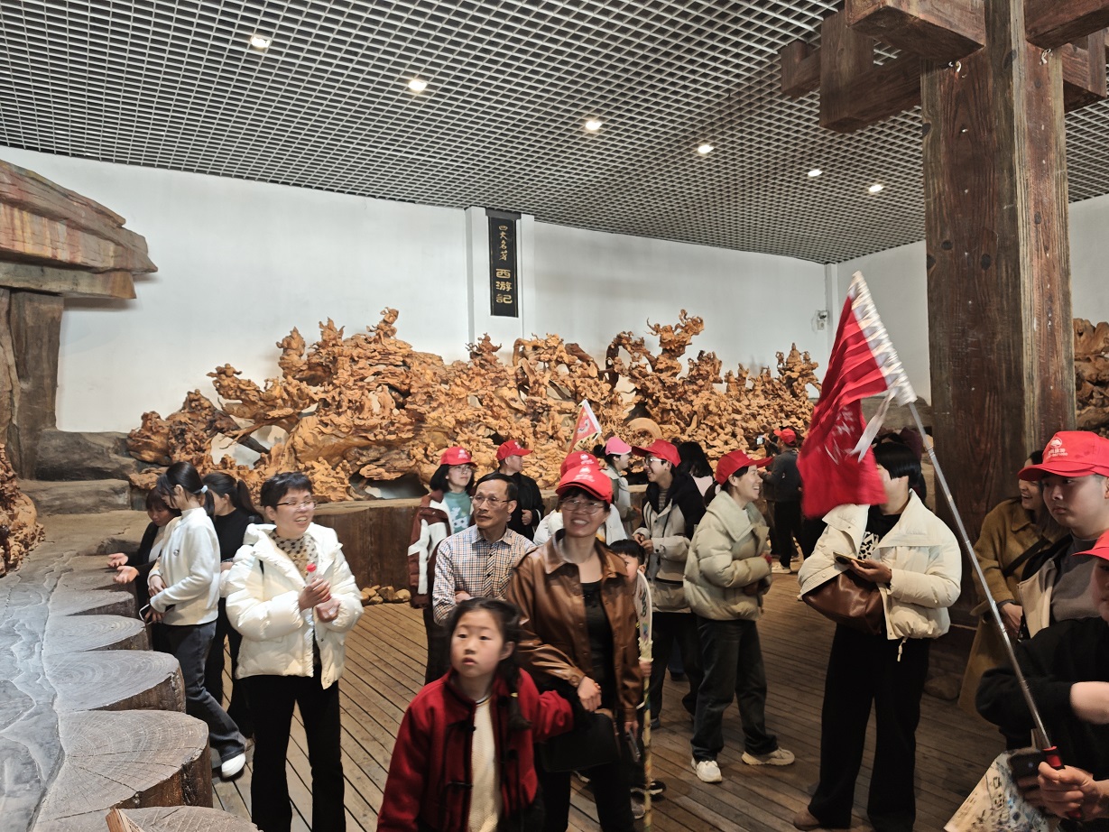 此次出游目的地為安徽太湖縣五千年文博園。抵達(dá)景區(qū)后,大家迫不及待地進(jìn)入文博園,跟著導(dǎo)游的講解徜徉在五千年?duì)N爛文化中:尋根問(wèn)祖文化墻、摩崖瀑布、中華孝道園、中華漢字龍見證古典文化創(chuàng)意;“孔子列國(guó)行”、“老子天下第一”、“釋迦牟尼臥佛”見證儒、道、佛“三教并流”的和諧文化;1500米巨幅歷史長(zhǎng)卷、秦始皇塑像群、茶馬古道,五千年根雕藝術(shù)館——上千件5噸重根雕讓大家感嘆化腐朽為神奇的根雕藝術(shù),萬(wàn)佛塔、華夏愛情文化園、中華百工坊、百年民俗館、四大名著文化園再現(xiàn)歷史文化的千年滄桑……一期、二期兩個(gè)園內(nèi)景點(diǎn)錯(cuò)落有致,它們濃縮著中華五千年文化的精髓,每一塊磚瓦、每一處雕刻,都仿佛在訴說(shuō)著往昔的故事,吸引著大家紛紛駐足觀賞、拍照留念,活動(dòng)在大家無(wú)數(shù)次的贊美中愉快結(jié)束!